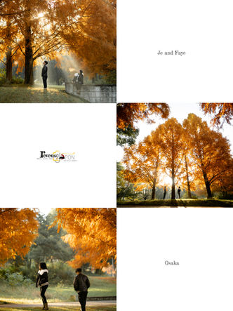 “Sunrise whispers through metasequoia giants! Jc and Faye lost in Japan’s autumn glow—foliage ablaze, air crisp, magic fleeting.”